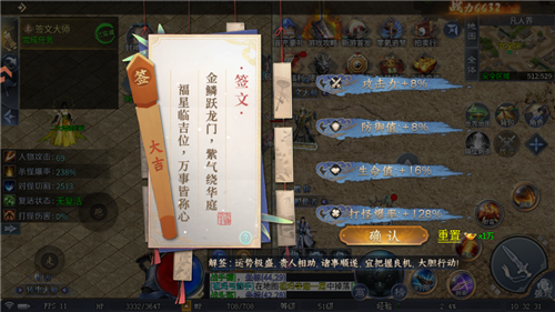 5、玩家可以通过求签,获取每天的增益加成。