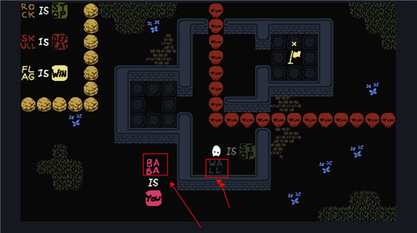 名词1 IS 名词2会将第一个名词的所有实例转换为第二个名词。这种情况会立即发生,如果规则中断,则不会撤消。变形后的物体不会保留它们变形的任何特征(因此Baba Is You / Baba Is Crab会冻结水平,除非Crab Is You)。