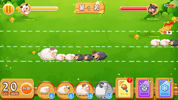 3、只有在相对的跑道上比对面的羊的力量更强才能将敌方的羊一直压制后退。