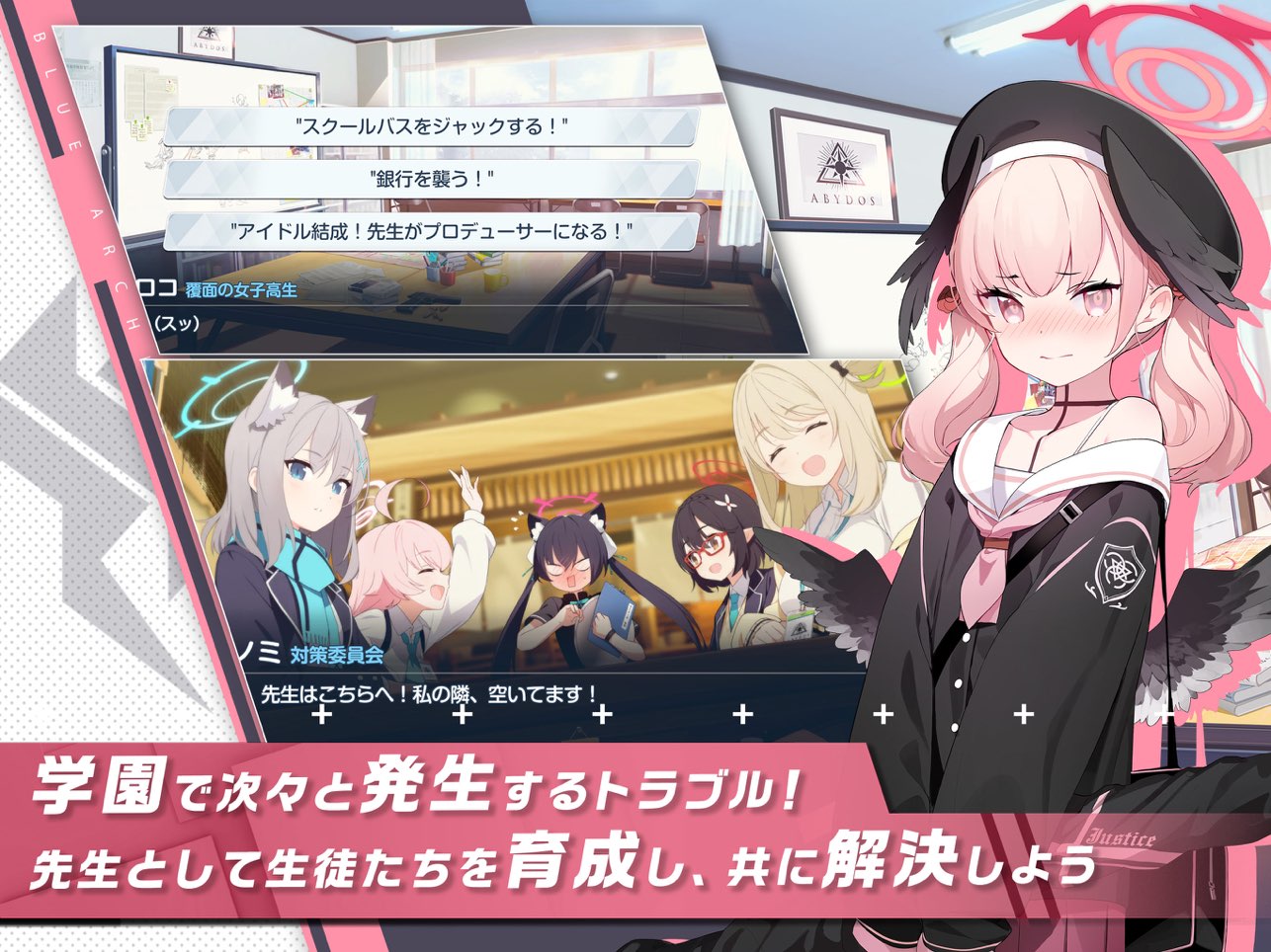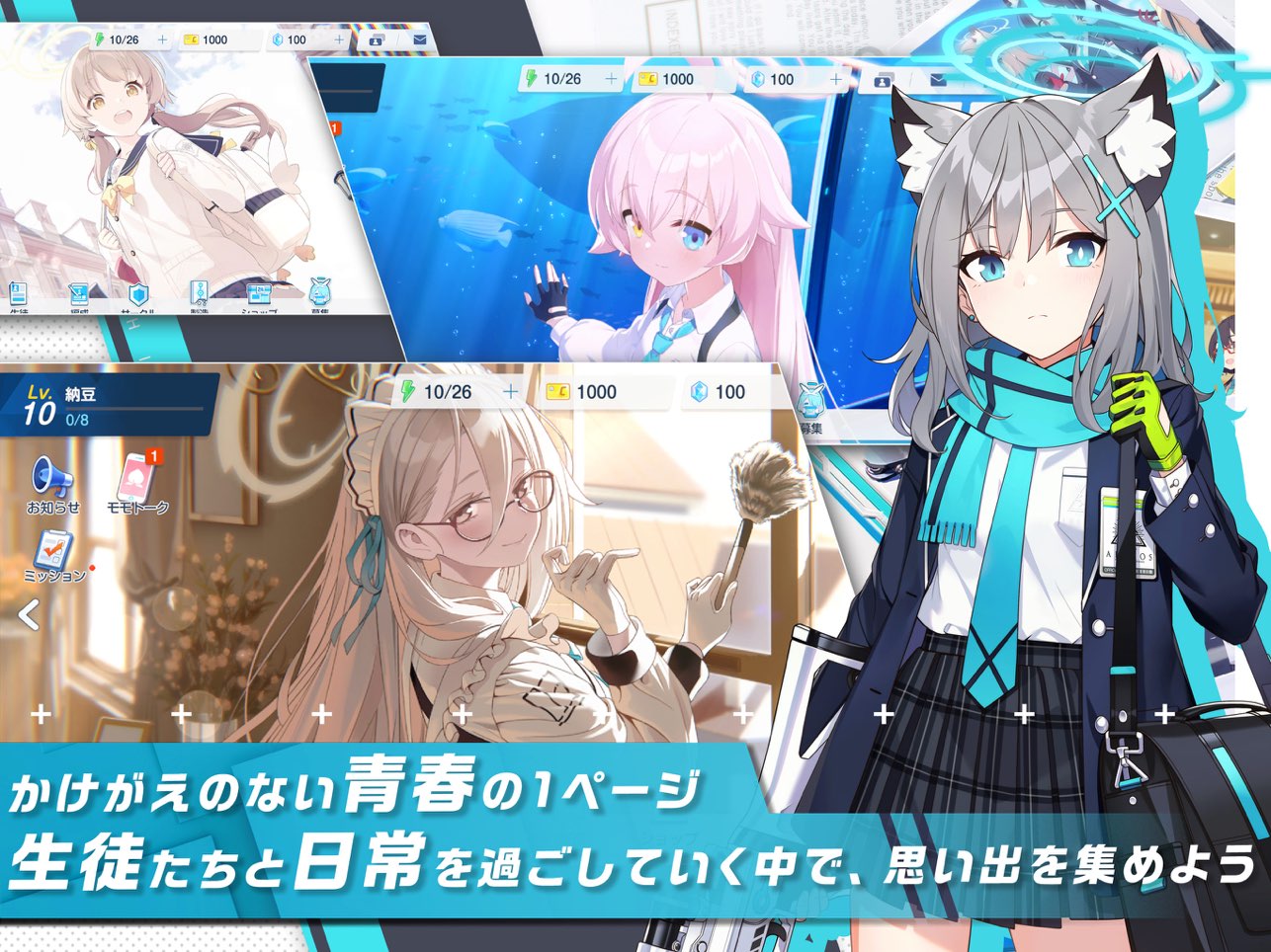 蔚蓝档案日服是一款角色扮演类的剧情互动式二次元美少女冒险游戏,在游戏中玩家们将会来到一个名为基沃托斯的学园都市中担任一位教师,在这所校园中你发现每一天都会发生一些事件,你身为教师所要做的就是带领你的学生们去解决这些事件!你需要以抽卡的方式去获得游戏中的美少女角色,组成六个人的战斗小队!每一位角色都拥有自己的特殊效果!这一次小编给大家带来的是日服版本,你可以在游戏中与日本玩家在线交流!感兴趣的玩家快来下载吧!