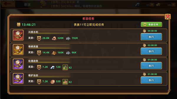 创建或加入帮派可以获得200金条,完成帮派集结任务还可额外领取【帮派资金】【集体加速道具】,与盟友共筑西部霸业。