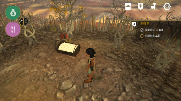 4、不过游戏中工具使用久了,其状态栏就会变黑。此时就需要玩家寻找路边的磨刀石,将工具打磨锋利后方可继续使用。