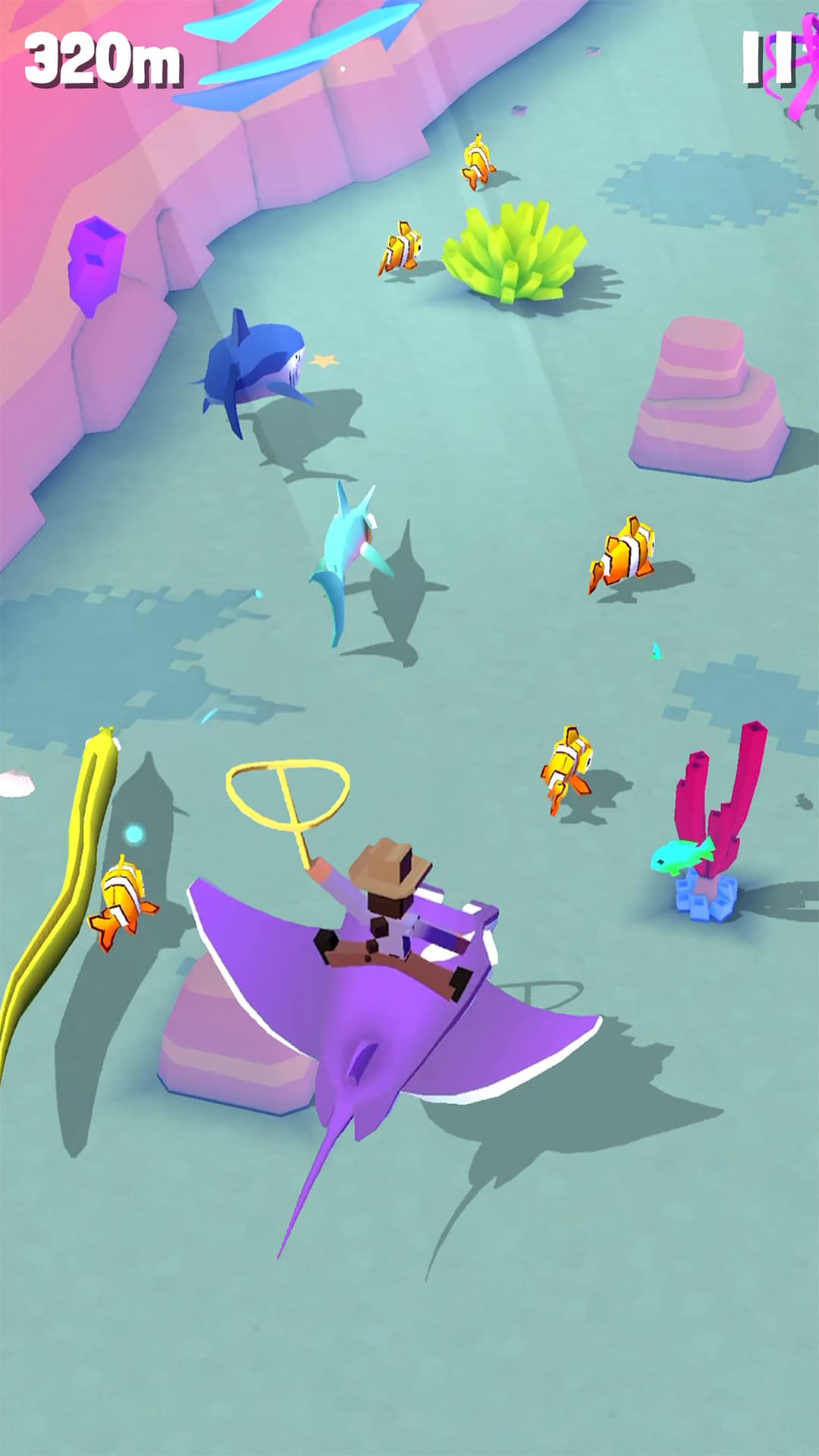 2、趣味十足的跑酷玩法,需要通过套住动物的方式来不断的前进。