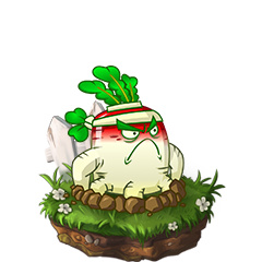变身胡萝卜发射塔,将一颗胡萝卜导弹发射至僵尸面前,僵尸啃食完毕后爆炸。