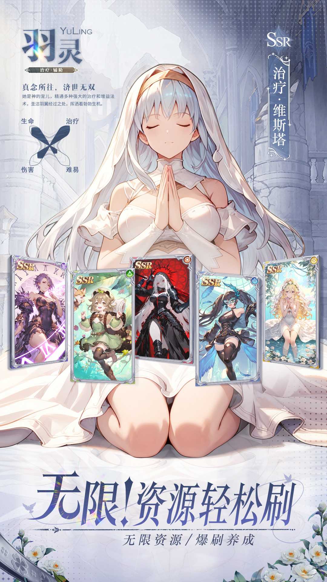 1、阵容搭配瑞斯藩+露娜+阿涅斯+赫维尔<农场送的奶妈>+任意抽取英雄
