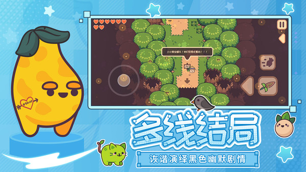 大头菜菜历险记是一款萌趣像素冒险解谜游戏,在游戏中玩家将化身成为一颗可爱的大头菜,在不同的地图上探索,在蔬菜城中搜索着各种秘密。我们在蔬菜城中还可以交到性格迥异的蔬菜朋友,它们会为我们提供帮助和线索,在游戏剧情的推进中,我们的选项也会导致不同的结局。战斗玩法不会特别复杂,简单的操作让大家能够体会到游戏的快乐,不用强行肝装备,解放自己。在冒险的过程中我们还能够收集各种装扮打扮自己,解锁不同风格。