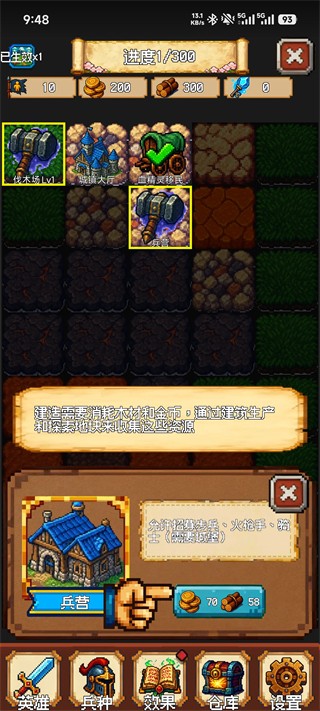 利用兵营持续招募 步兵、圣骑士、火枪手 等单位,通过合理搭配阵容提升战斗胜率。