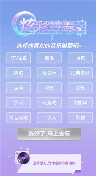 1、打开游戏,选择游戏音乐类型,点击马上去玩