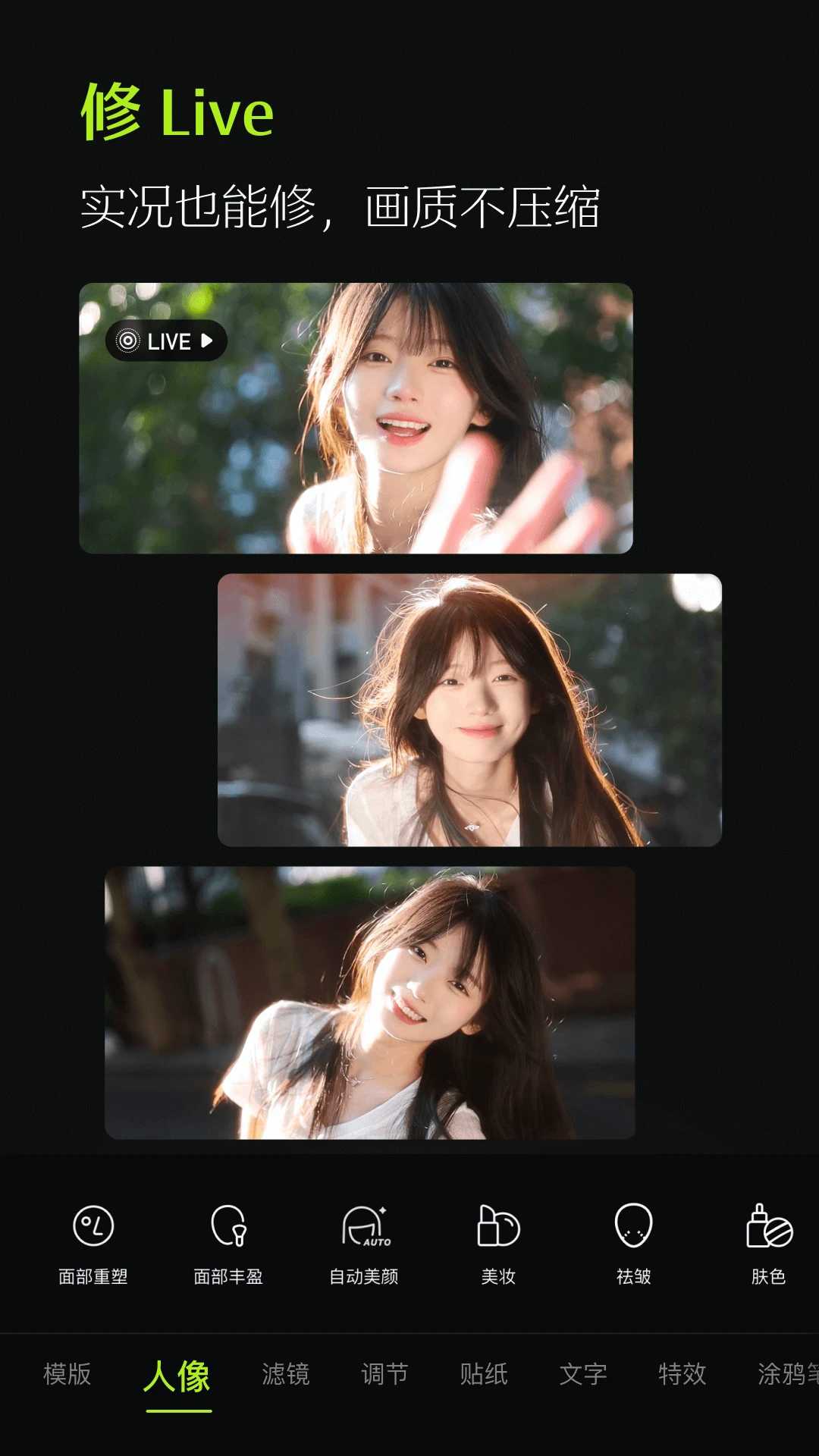 1、修改到自己满意的状态,可以轻松编辑自己的自拍照,支持一键分享保存原图功能。
