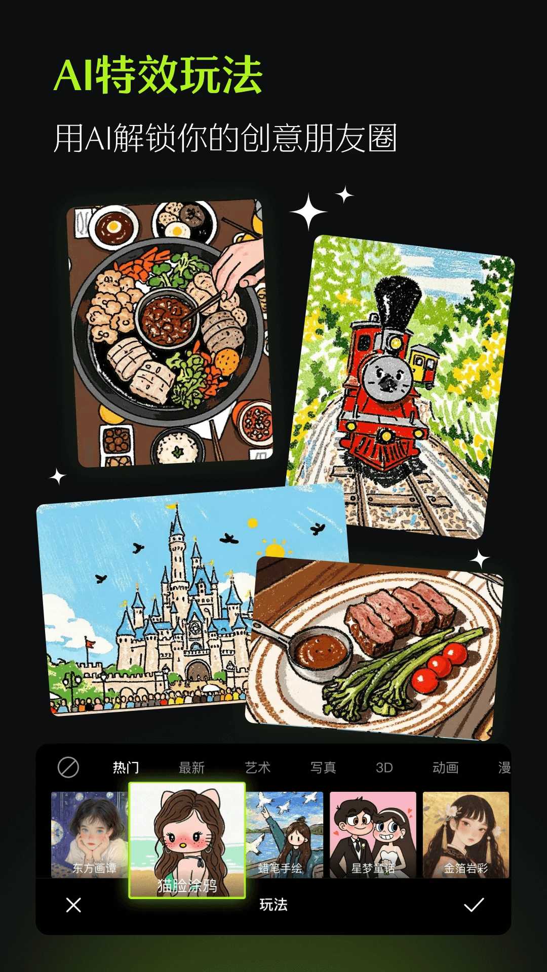 拿常见的“边框”功能来说:除了常规的纯色边框,App 还内置了多种风格的特色边框——复古电脑屏幕、CD 封面、车窗后视镜,甚至是地铁车门……所有生活中的物件,都可以成为照片边框的创意来源。这些奇思妙想,有时也能激发创作者的想象力。