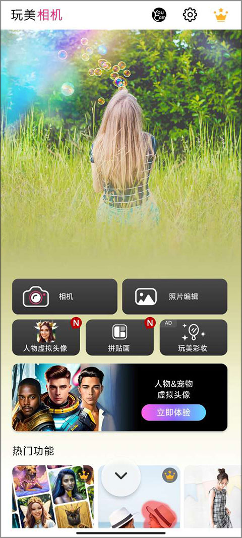 玩美相机是一款集AI美颜、潮流滤镜、专业修图于一体的全能摄影APP,由玩美移动(Perfect Corp)开发。无论自拍、他拍还是景物拍摄,都能一键生成杂志级大片,轻松打造自然精致的“原生感”高颜值!AI智能美颜黑科技、3D面部建模:智能识别五官,定制专属脸型、大眼、瘦鼻等微调,拒绝“网红脸”失真,实时试妆大牌口红/眼影,素颜秒变精致妆容。感兴趣的小伙伴快来下载吧!