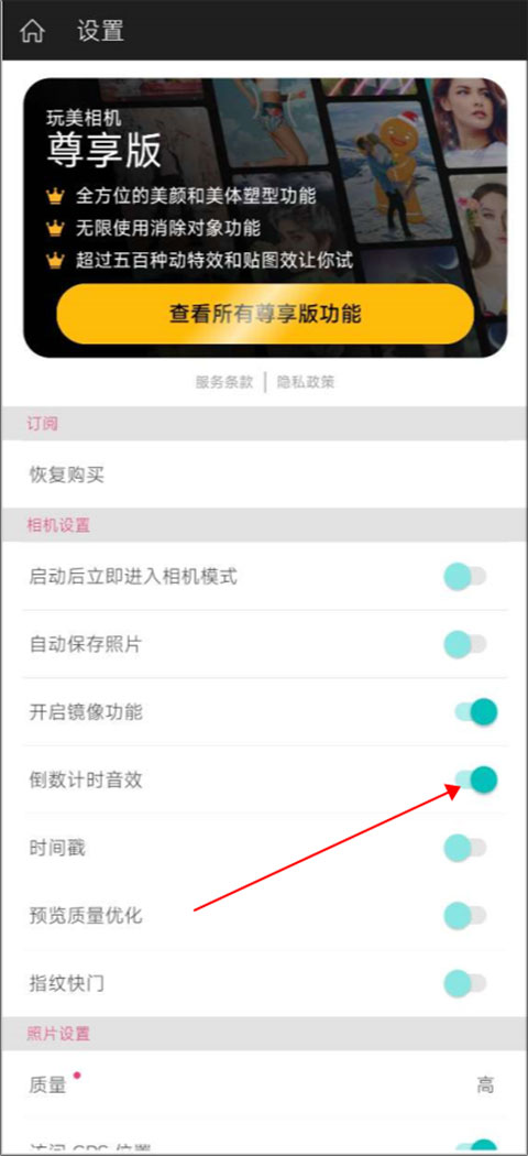 玩美相机软件开启倒数计时音效方法