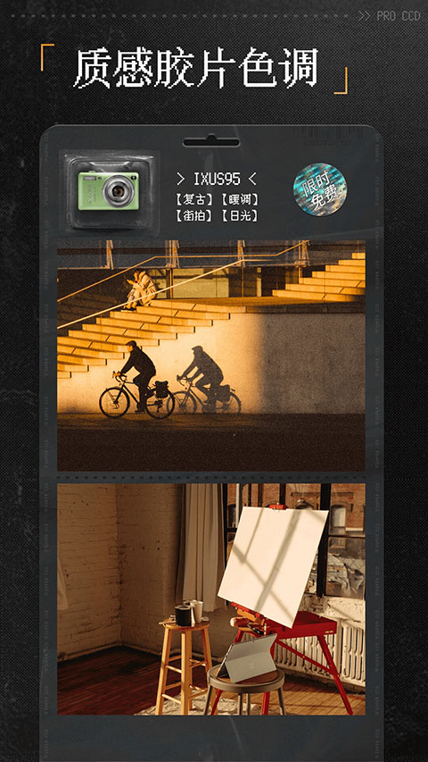ProCCD是一款专为怀旧摄影爱好者打造的高品质胶片相机应用,完美复刻80年代至千禧年间CCD相机的独特质感与色彩风格。无论是追求复古颗粒感、经典漏光效果,还是想要体验双重曝光和镜面投影等创意玩法,这款软件都能轻松实现。它突破传统相机的局限,提供双镜头变焦、胶片废片模拟、时间水印等多元化功能,同时支持翻转自拍和倒计时拍摄,让每张照片都充满故事感。从细腻的色调还原到创意的拍摄体验,ProCCD都能满足你对复古摄影的所有想象,用极简操作带你重回胶片黄金时代。