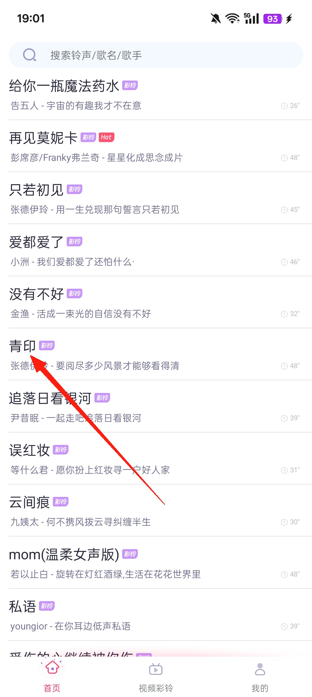 1、打开软件,登录之后,点击想要设置的铃声