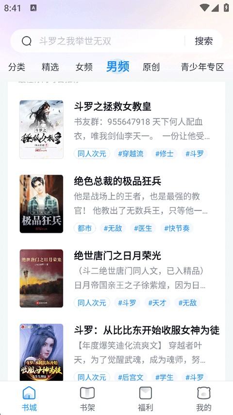 男频热门图书:格斗狂想、仙界归来、美女市长老婆、女总裁的修仙兵王、大唐霸图、极品女婿等。热门乡村小说、都市言情、玄幻修仙等各类小说邀你来看。