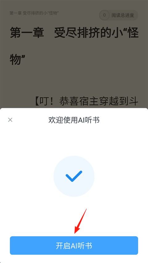 2、点击屏幕,在弹出的功能对话框中选择右下角的听书。