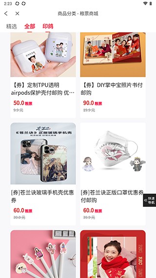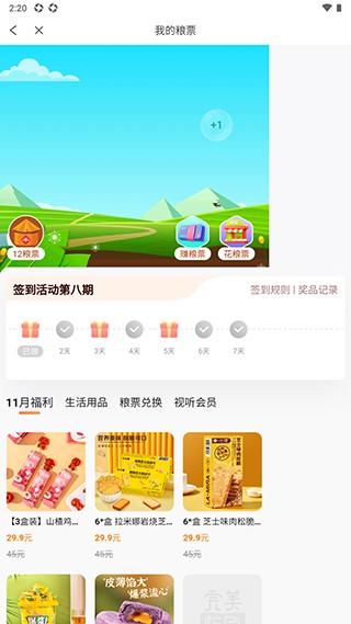 3、点击旁边花粮票—粮票兑换栏,既可以进入粮票商城兑换商品。