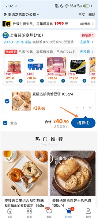 4、随后去购物车板块点击结算。