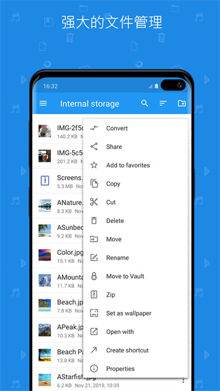 File Commander是款多系统文件管理软件,可管理各类文件,能复制、移动、删除、重命名文件,支持压缩和解压文件。可连接网盘,通过蓝牙、网络传文件,还能批量处理多个文件。还有文件加密和隐藏功能,安全保护用户敏感数据。还内置了文件图片查看器和播放器,不用下载别的软件就能看图片、音视频。软件还能分析设备存储情况,会根据分析结果给出优化建议。即使是普通用户也能快速上手使用操作,适合需要经常性管理文件的用户使用。