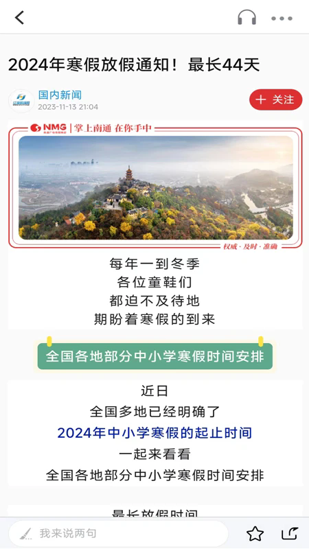 1、在新闻页中,用户可实时了解南通新闻、崇山新闻、城市日历等资讯。