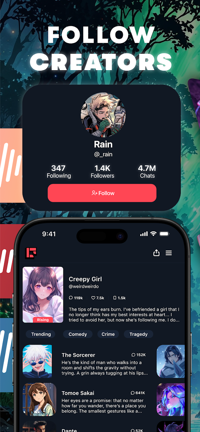 关注您最喜欢的角色创作者,或者将他们与您自己的创作绝对进行比较。这不仅仅是给人工智能发短信——它是所有角色扮演狂热分子聚集在一起策划、策划和煽动的社交空间。我们为梦想家和富有想象力的人打造了一个游乐场。挺过去吧——这里很混乱,但这里是家。