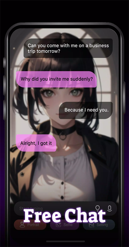 2.解锁选中的角色,进入聊天界面,通过文字或语音与AI角色对话,可自由推进剧情或进行日常交流。