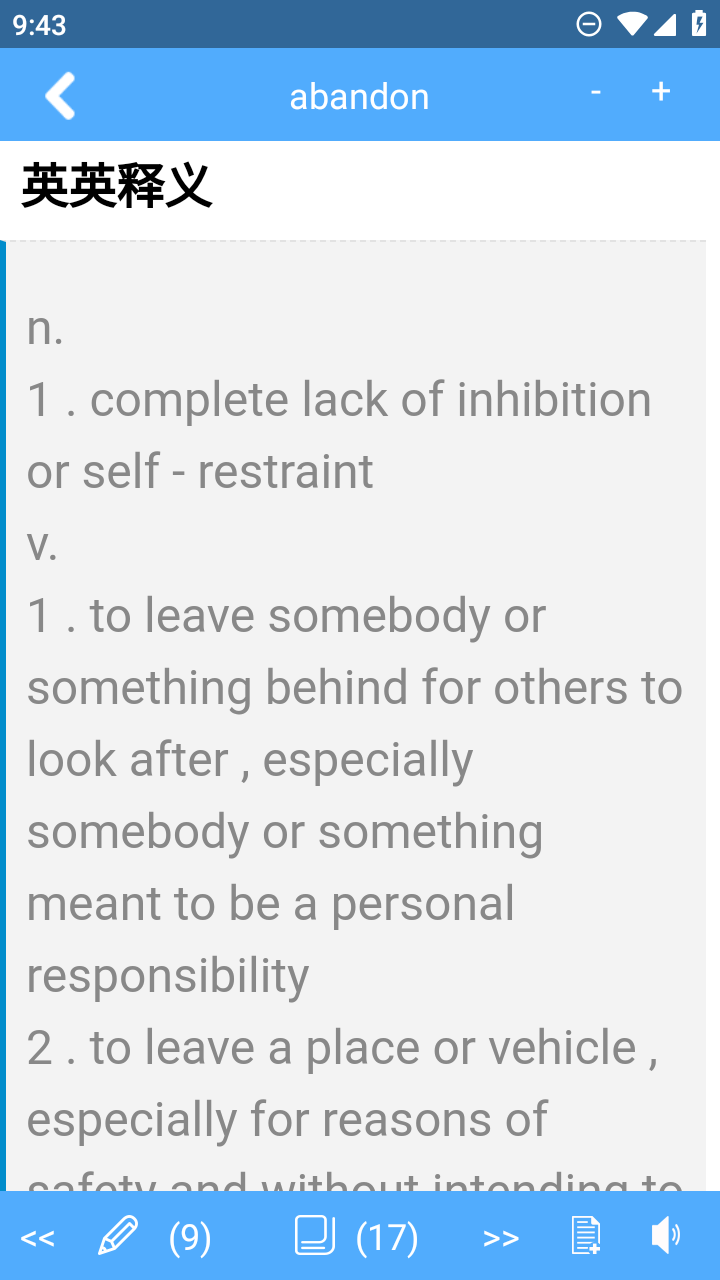 1、首先下载之后你可以在首页你可以输入你要查找的单词,以我们经典的abandon举例开始搜吧。