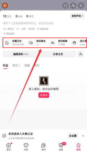 4、个人中心包含历史记录查询、亲密好友管理、群组列表及礼物收发记录。