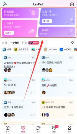 4、一起玩、扩列新增快速进房,一键直达心仪房间。