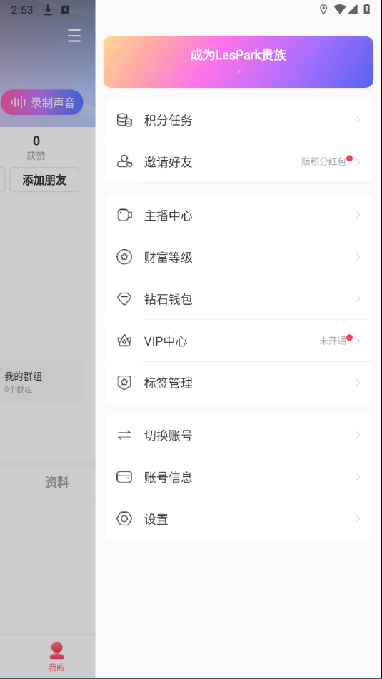 打开LesPark软件,进入到个人相关设置界面后,再点击【账号信息】。