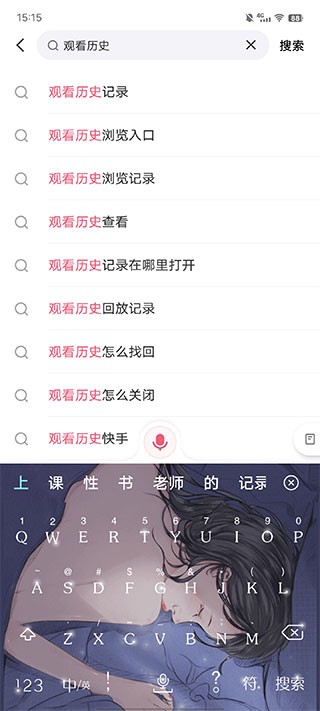 2、打开搜索页面后,在搜索栏中输入观看历史,然后点击搜索。