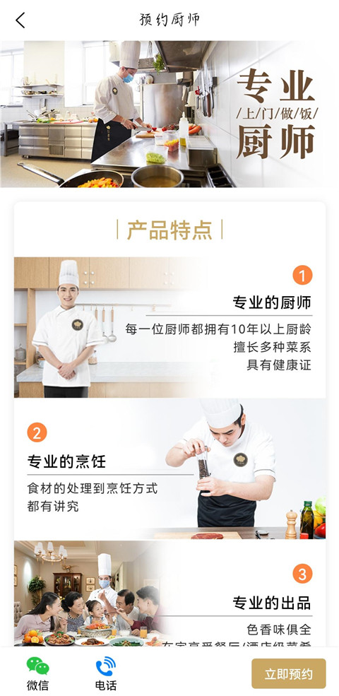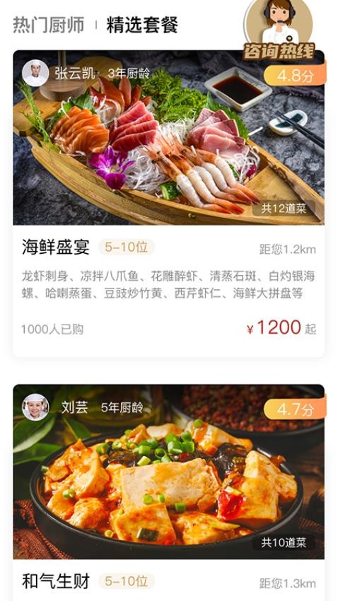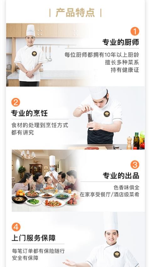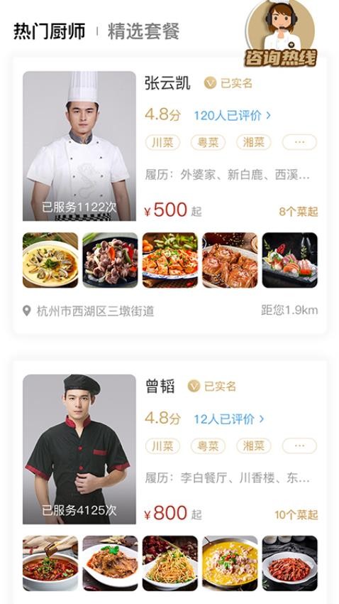 具备了简单易懂的下单流程能够一键下单预约周边的厨师。