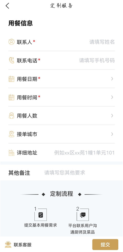 3、填写联系方式、用餐日期等信息提交预约信息。