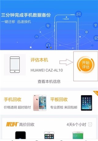 1、在本站下载并安装后打开,进入软件之后,软件里会显示您的手机型号,右边有一个“手机评估”,点击“手机评估”。
