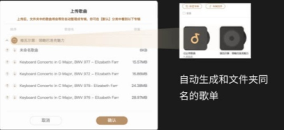 识别歌曲后,确认上传,将根据文件夹自动生成对应专辑。
